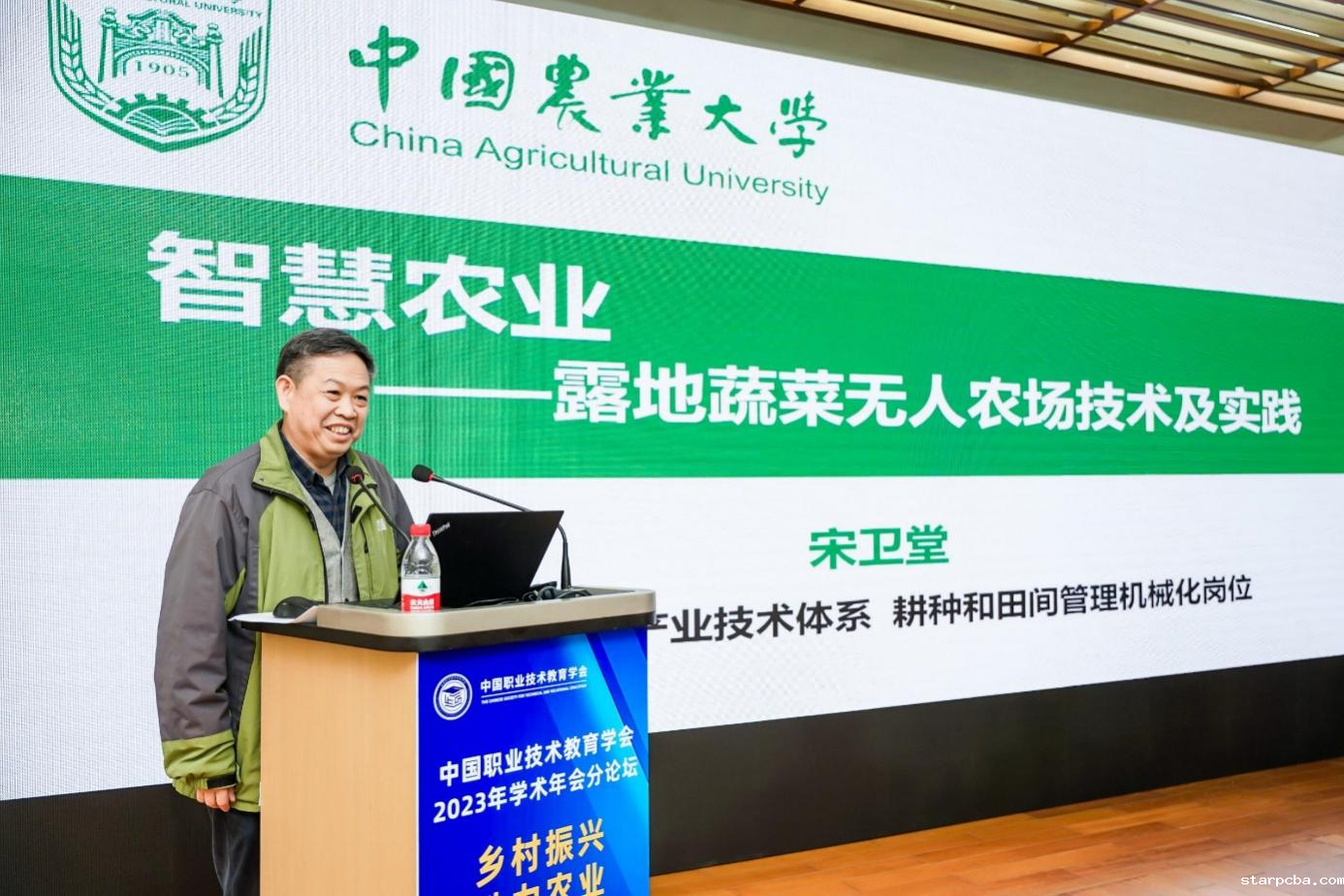 宋卫堂作题为《智慧农业——露地蔬菜无人农场技术及实践》的报告。报告深刻诠释了智慧农业的本质内涵和主要特征,介绍了智慧农业相对于传统农业的优势,阐述了发展智慧农业的必要性,并以蔬菜无人农场为例,从技术模式、管理平台、关键技术、农机农具等方面介绍了无人农场生产管理模式,展示了无人驾驶、耕地、起垅、移栽、采收、植保、巡检作业等农场实践,全方位展现了5G、农业物联网、农业遥感、农业大数据分析决策、智能农机、农业机器人等现代信息技术装备对传统涉农专业的升级改造。
