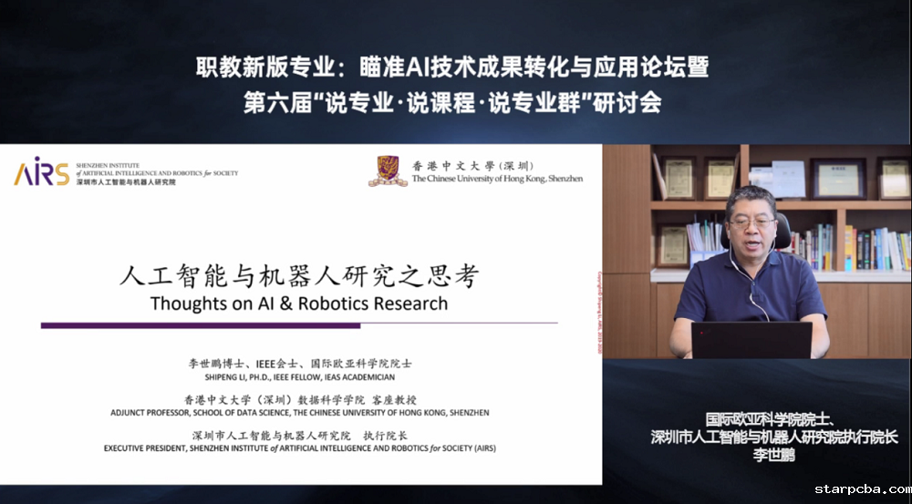 会议还邀请了国际欧亚科学院院士、深圳市人工智能与机器人研究院执行院长李世鹏在线作题为“人工智能最新技术进展”的主题报告,介绍了人工智能和机器人研究全景。他表示,目前通过深度学习和大数据的方式来实现人工智能成为主流,包括医疗、教育、农业、智能制造等许多垂直行业都已经通过这种形式与人工智能相结合。李世鹏对机器学习、运动智能、人机协作、群体协作四个研究方向逐一进行分析,指出我国发展人工智能既有很好的基础和优势,也面临巨大的挑战,需要探索一条符合国情的发展道路。对此,他建议坚持科技引领、应用驱动的战略导向,以促进人工智能与经济社会国防融合为主线,以提升科技创新能力为主攻方向,全面推动人工智能。