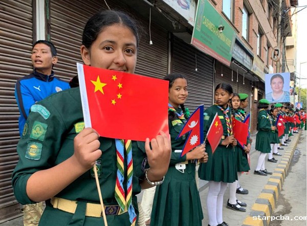 这一面面飘扬的旗帜、这一张张热情的笑脸,中印、中尼友好扑面而来。