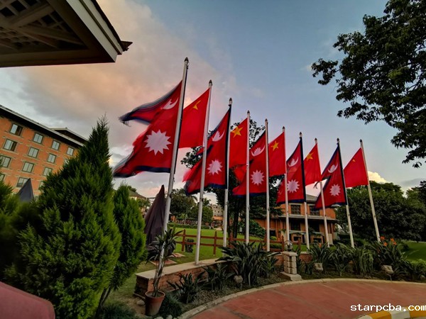 习近平主席在加德满都下榻的饭店院内飘扬着中尼两国国旗。新华社记者赖向东摄