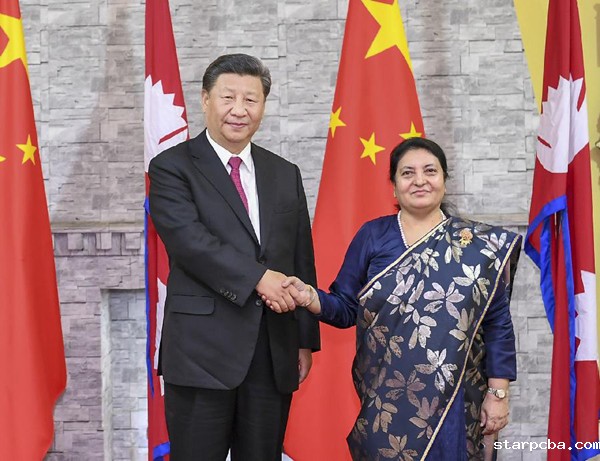 10月12日,国家主席习近平在加德满都总统府会见尼泊尔总统班达里。新华社记者谢环驰摄