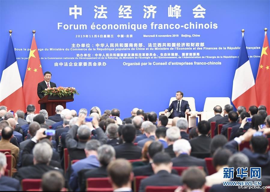 11月6日,国家主席习近平在北京人民大会堂同法国总统马克龙共同出席中法经济峰会闭幕式。这是习近平在中法经济峰会闭幕式上致辞。新华社记者 燕雁 摄