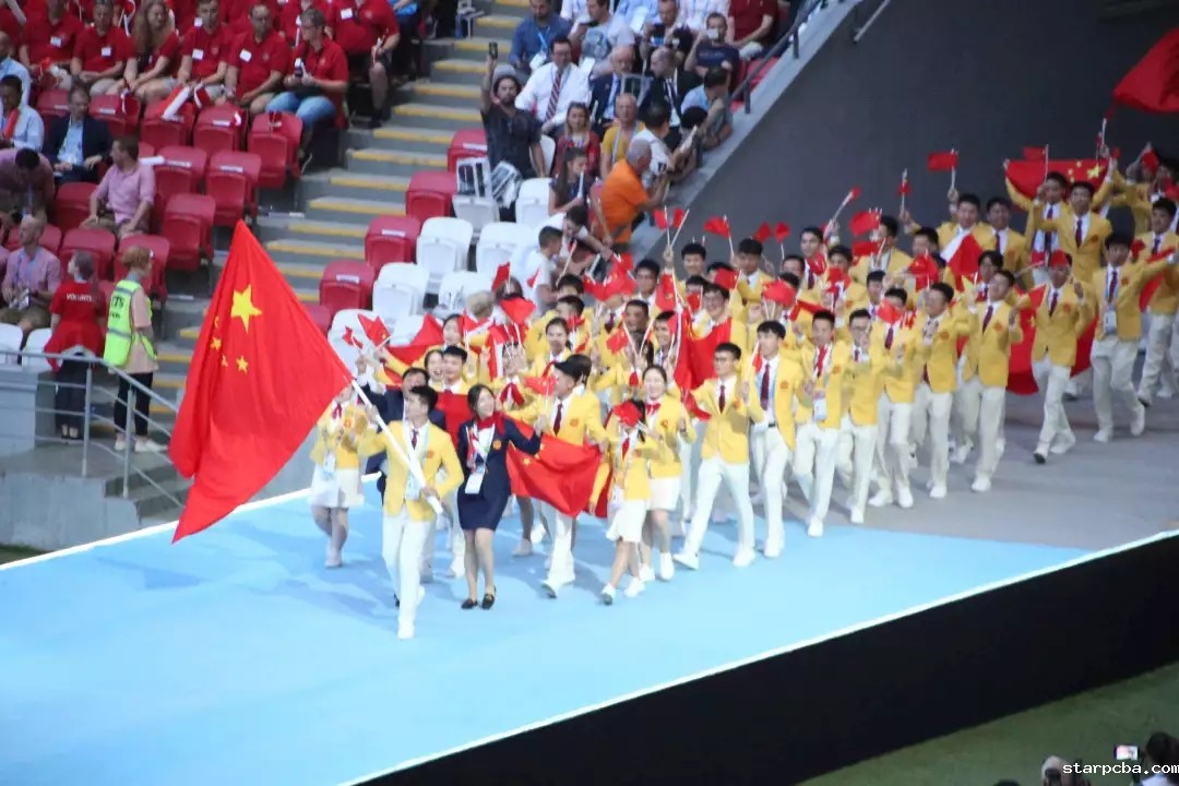 8月27日晚,在喀山闭幕式现场,胡耿军和郑棋元身披鲜艳的五星红旗,站上领奖台的那一刻,看到台下一片中国红,两人激动不已。