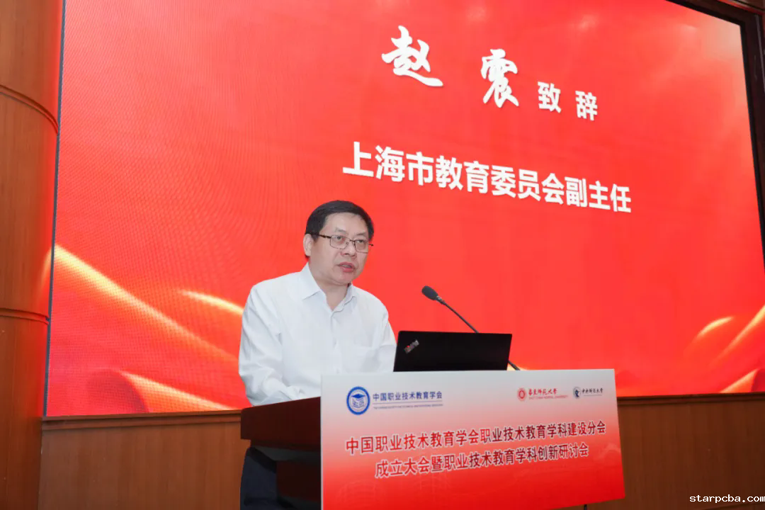 赵震在致辞中表示,华东师范大学牵头成立职教学科分会,既是对学校职业教育研究实力的肯定,更是对上海职业教育创新发展的有力支持。上海市教育委员会将一如既往地支持华东师范大学及职教学科分会的工作。面向未来,期望分会要强化学科引领,构建理论体系;要深化协同创新,服务国家和地方战略;要扩大开放合作,提升国际影响。成为职业教育理论研究的高地、实践创新的平台、决策咨询的智库,为推动职业教育高质量发展作出更大贡献。
